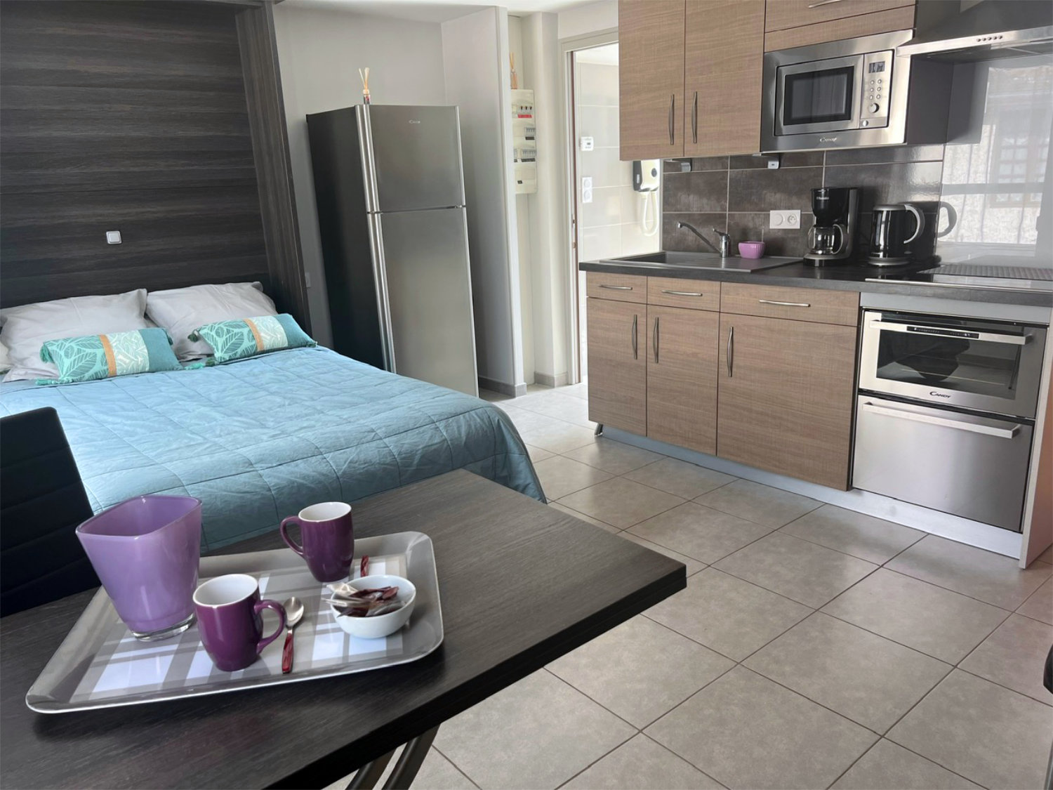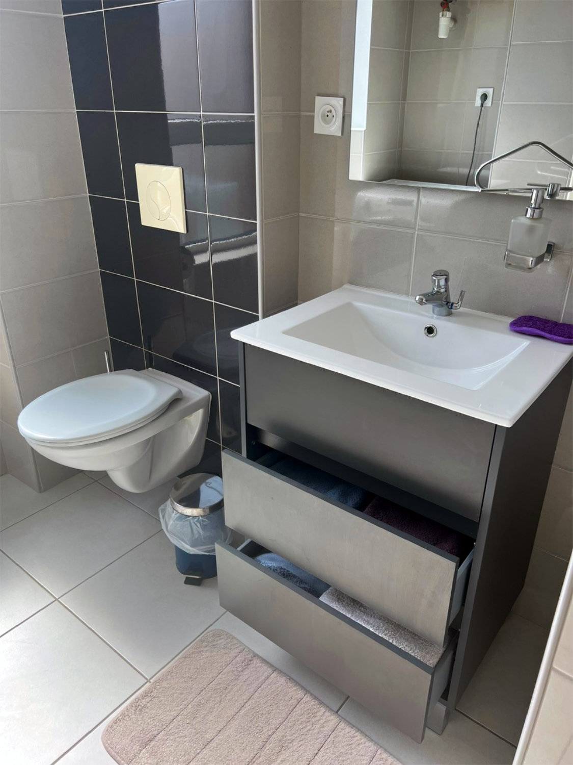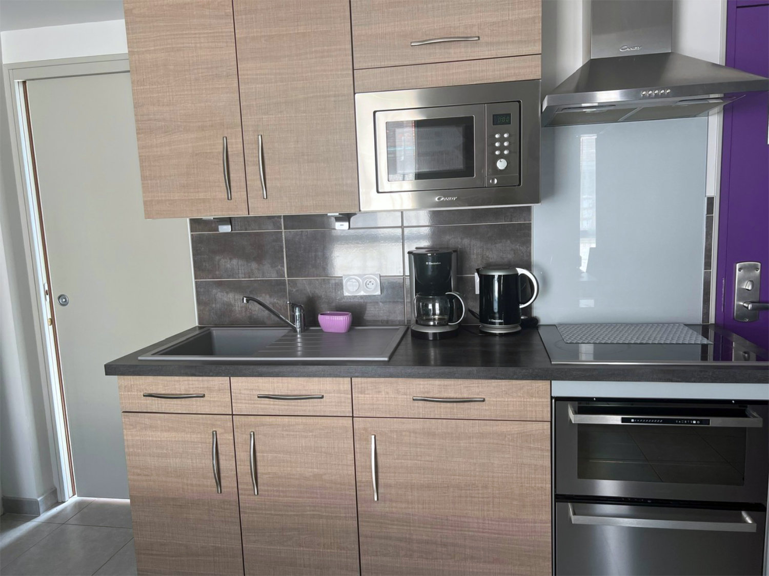 Cuisine toute équipée (frigo, lave-vaisselle, four, micro-ondes, lave-linge, séchant), TV.